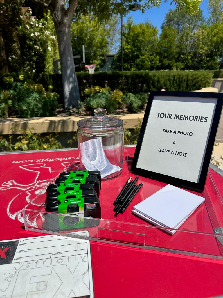 Guests checked in at a “will call” desk at the entrance, where they picked up All Access lanyards that matched the custom concert style poster reading “Baby Barker World Tour – Special Guest: Kravis.” The poster, designed by Edgar Regalado, featured baby blocks, a drum set, and red roses, perfectly blending punk rock with baby sweetness. Guests also chose either a pink or blue wristband depending on their gender guess.