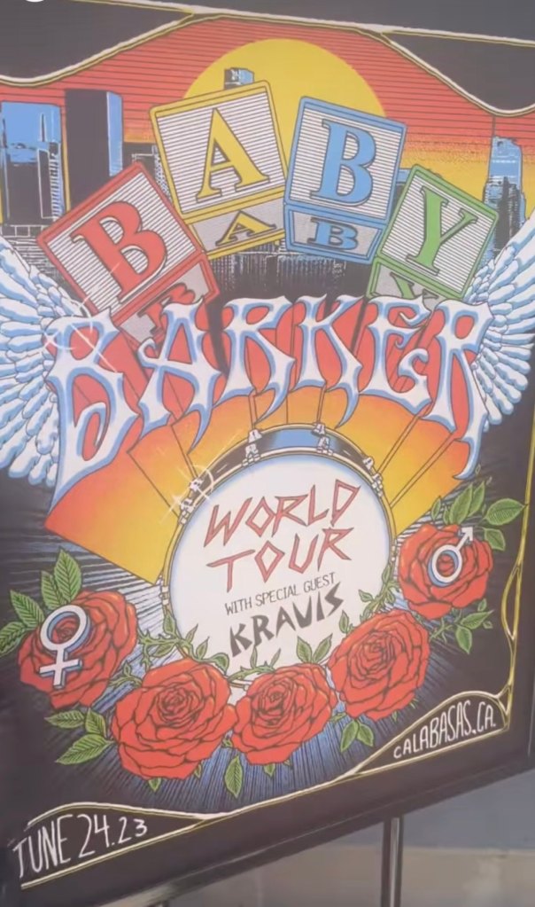 When Kourtney Kardashian Barker and Travis Barker announced they were expecting, fans knew the celebration wouldn’t be anything short of iconic. True to their rockstar aesthetic, and Travis’ legacy as the drummer of Blink-182, the couple threw a Baby Barker World Tour themed gender reveal at their Calabasas home, transforming it into a full blown concert experience, complete with merch, stage, and a dramatic drumroll finale.