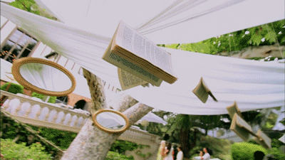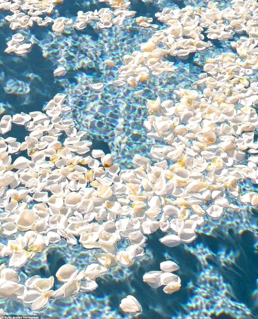 Make your party immersive with scent, sound, and texture, like Kylie’s pool filled with floating white rose petals at her giraffe shower, or the spa-like calm and sound bath at Kim’s CBD & Meditation shower. - Guest Book Alternatives