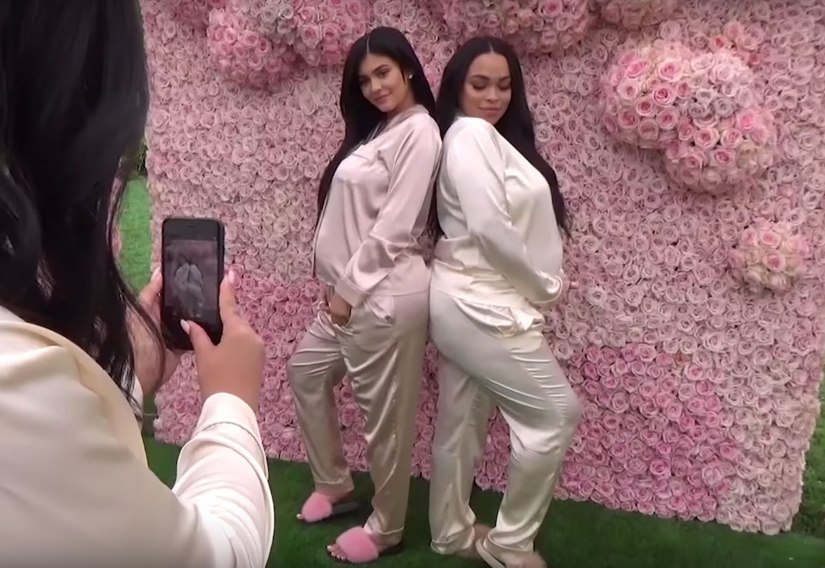 The theme was a Pretty Pink Pyjama Party, and guests wore matching silk pyjamas in soft blush tones. Kylie herself looked radiant in a silky pale pink pyjama set, with her hair styled in loose waves and her makeup kept soft and glowing. She posed for photos in front of a giant pink rose wall, which doubled as the perfect Instagram backdrop.