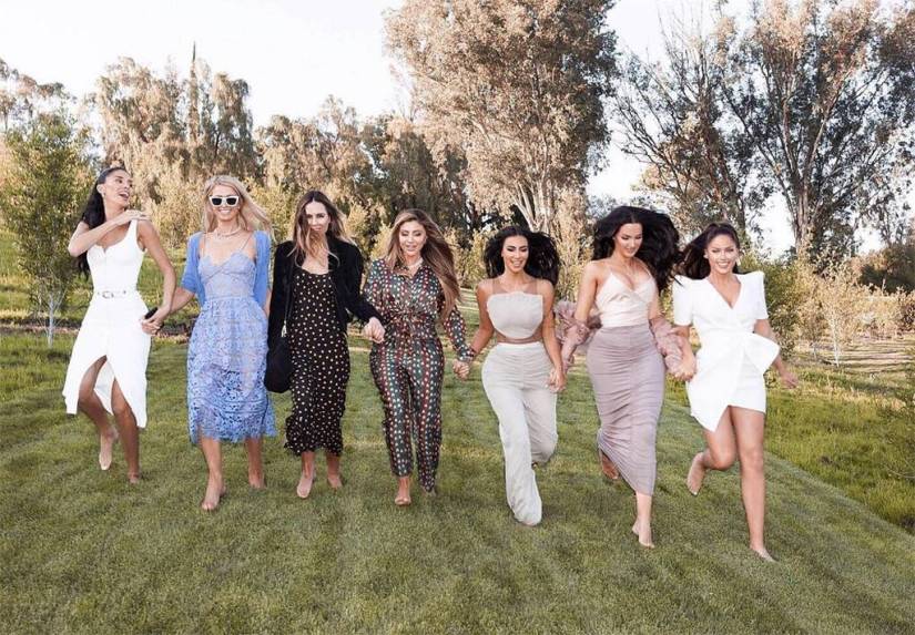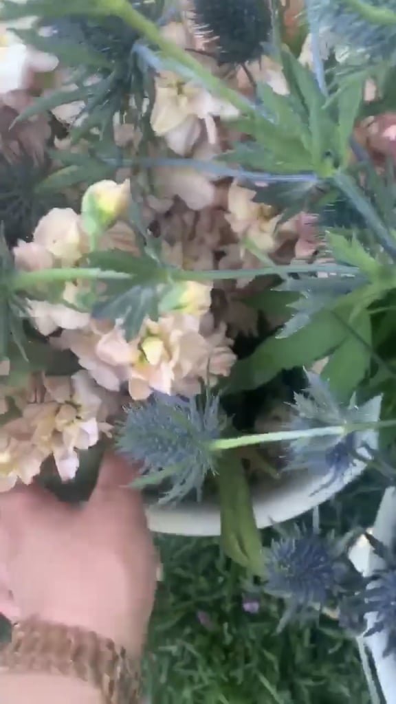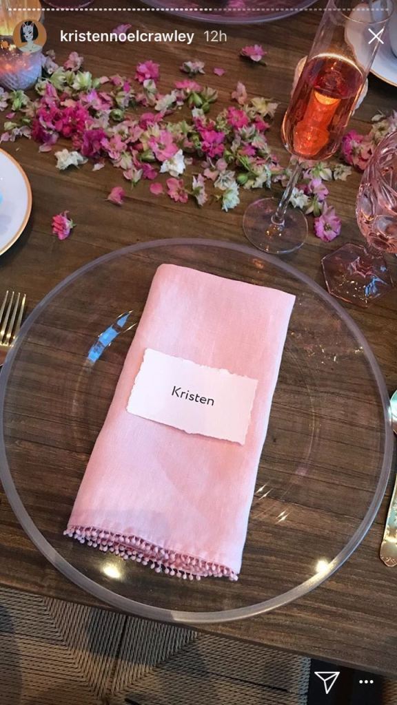 Kim and her sisters dressed like garden goddesses in flowing dresses and gypsophila crowns (also known as baby’s breath), adding to the bohemian vibe. Guests dined al fresco on a brunch buffet of eggs, bacon, bagels, pancakes, and waffles, with an omelette station and mimosa bar for good measure.