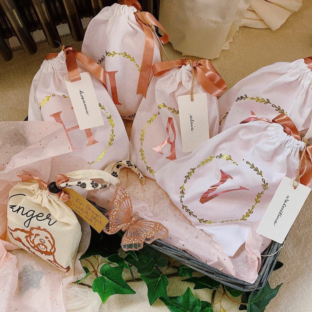 Now, let’s talk about those goody bags, because even the family dog, Ginger, got one! The bags were designed by Make It Friday, featuring a delicate ivy wreath design and personalised initials. They were fastened with, you guessed it, rose gold ribbon. Inside, guests found a mix of thoughtful treats and pamper goodies, perfect for a night of fun and relaxation.