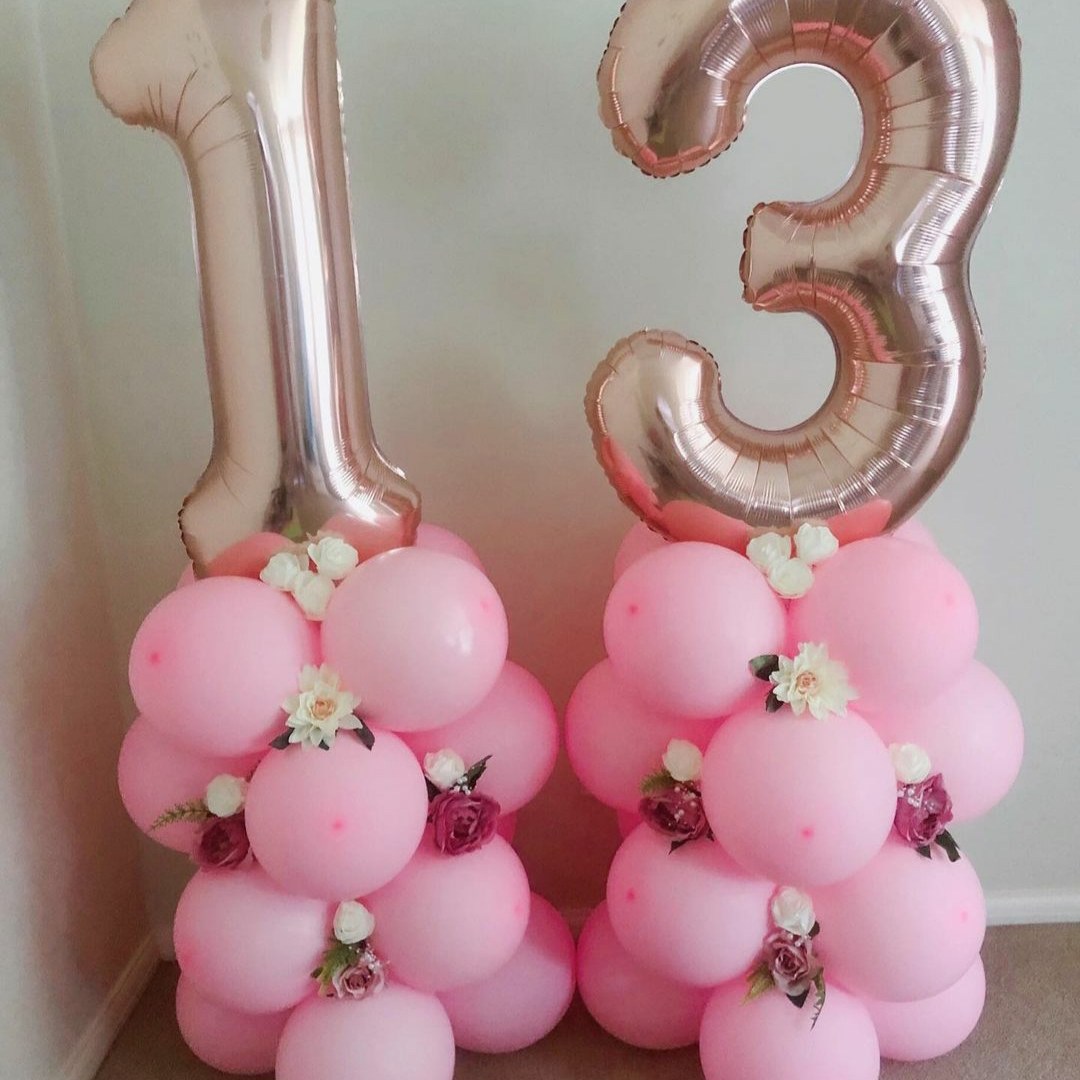 A balloon column by Floating Fancies completed the look, featuring rose gold number 13 balloons perched on a base of blush pink balloons. Nestled between the balloons were delicate white and rose pink flowers, adding a soft, floral touch that tied the whole theme together beautifully.