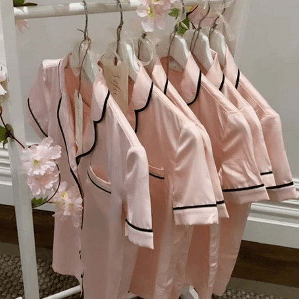 And just beside the teepee setup, a children’s dressing rail displayed personalised pink pyjamas, ready for the girls to slip into after the festivities. It was a sweet and stylish touch that added to the overall sense of occasion.