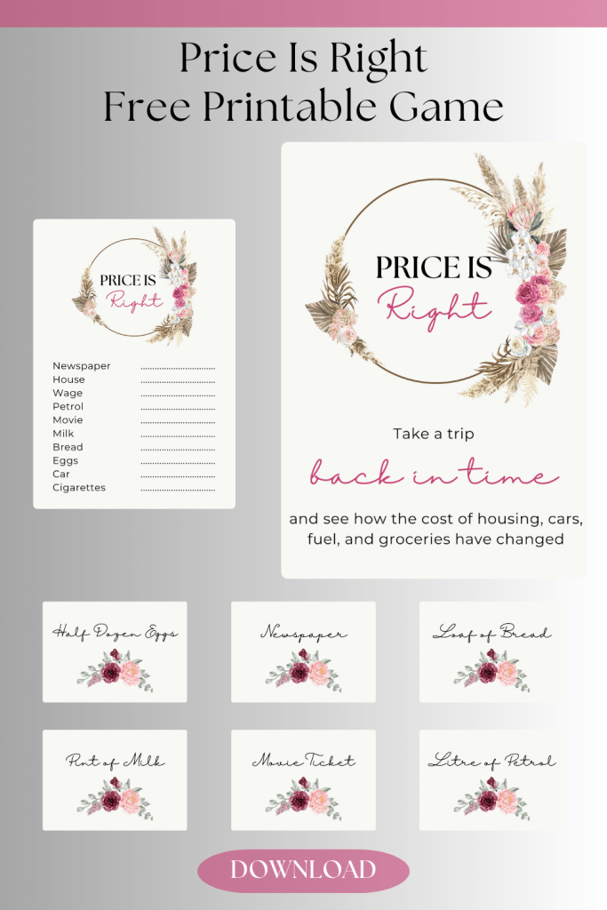 The idea is simple: guests guess the price of everyday items from the year your guest of honour was born. You can pick any year that fits your celebration, just look up prices for that year to make it personal!